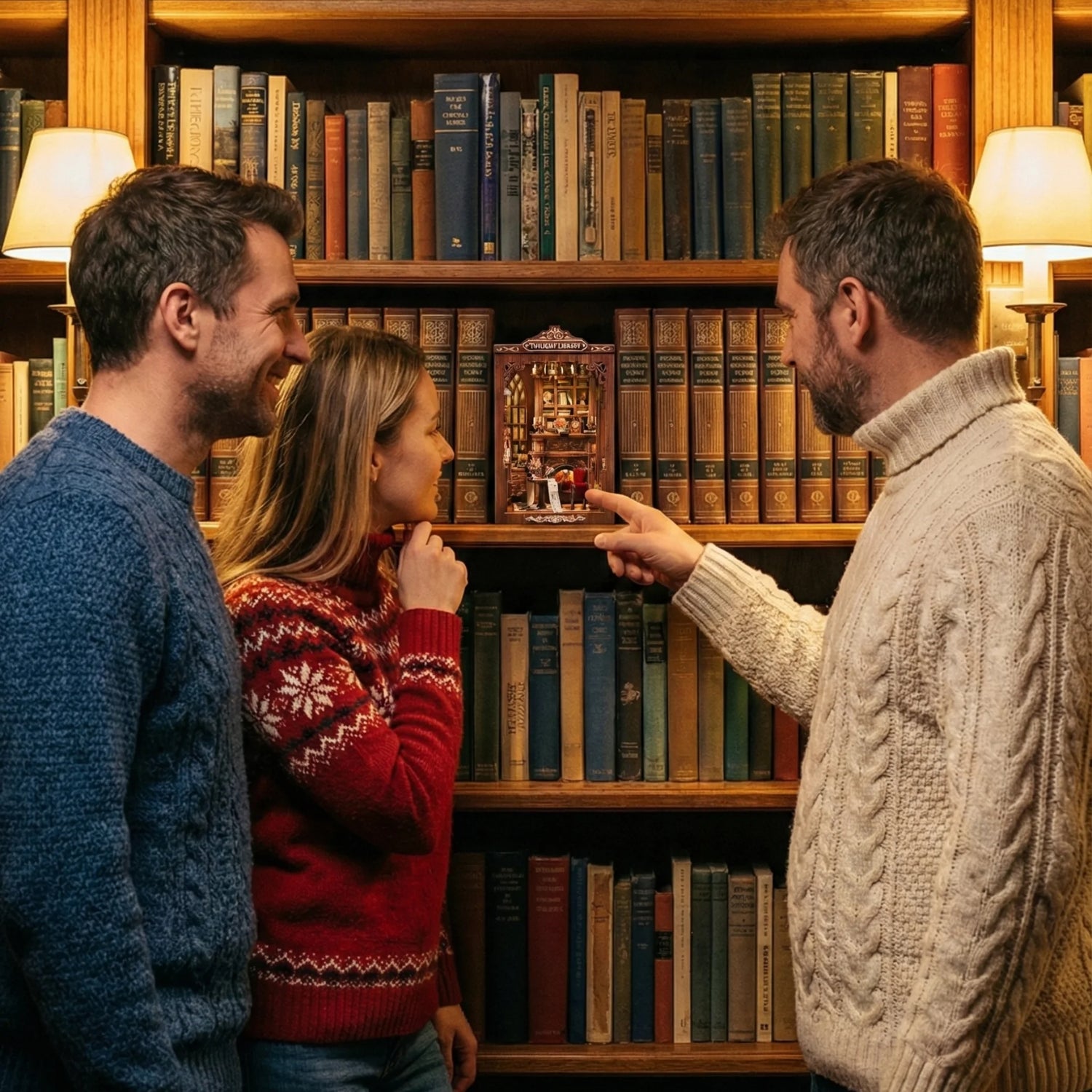 17.5cm tall × 10.5cm wide × 12cm deep. It fits perfectly between standard books on a shelf. That's the whole point of a "book nook."
